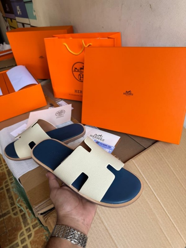 Hermes Mules Cream Blue